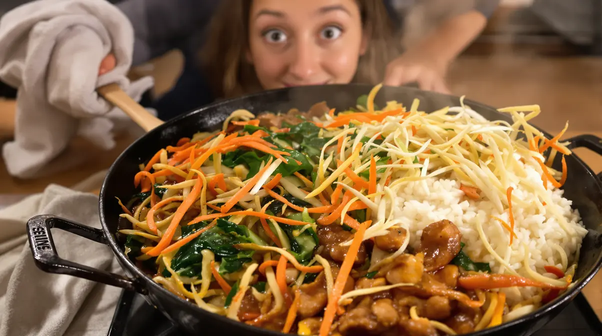 Bibimbap betekent letterlijk “gemengde rijst”. Het ziet eruit als een schilderij in een kom. En als u alles door elkaar roert, krijgt u pure comfortfood met pit.