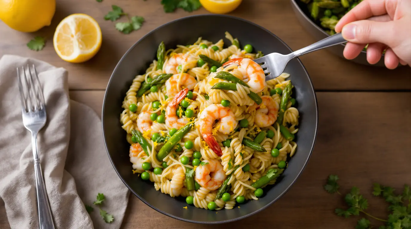 De combinatie is verrassend sterk. De kleine pasta, ook wel orzo genoemd, neemt de smaken mooi op. De groene asperges geven een knapperige bite. De garnalen maken het gerecht net wat luxer, zonder dat het zwaar wordt.